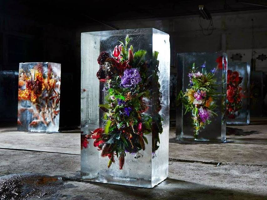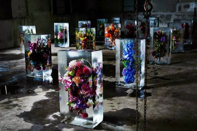 Όμορφες ανθοδέσμες λουλουδιών μέσα σε γίγαντια κομμάτια πάγου. Είναι η τελευταία έκθεση στο Τόκιο από τον Ιάπωνα καλλιτέχνη Makoto Azuma.