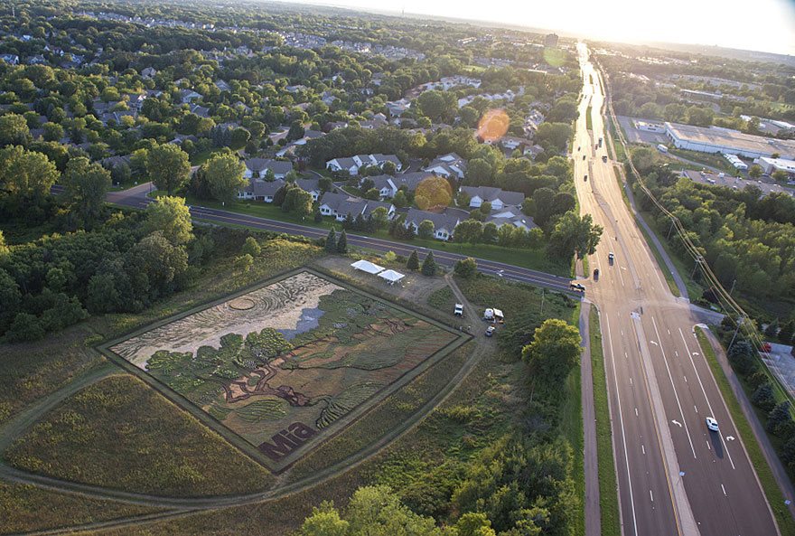 Ένα χωράφι στο Eagan της Μινεσότα πήρε ακριβώς αυτό το σχέδιο όταν ο 67χρονος καλλιτέχνης, Stan Herd, το μετέτρεψε στον πίνακα «Ελιές» (Olive Trees) του 1889 του Van Gogh.