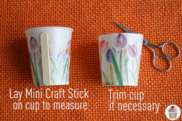 Χρησιμοποίησε ένα χάρτινο ποτήρι σαν βάση για το καλάθι. Αν χρειαστεί κόψε το στα μέτρα σου