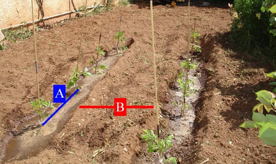Α: Αποστάσεις μεταξύ των φυτών μέσα στο αυλάκι.