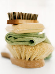 Στα έπιπλα κήπου: Καθάρισε τα έπιπλα από ρατάν ή μπαμπού με ένα νωπό σφουγγάρι βουτηγμένο σε νερό και πράσινο σαπούνι. Ξέπλυε με σφουγγάρι βουτηγμένο σε καθαρό νερό.