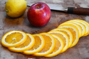 - 1 πορτοκάλι, κομμένο σε λεπτές ροδέλες