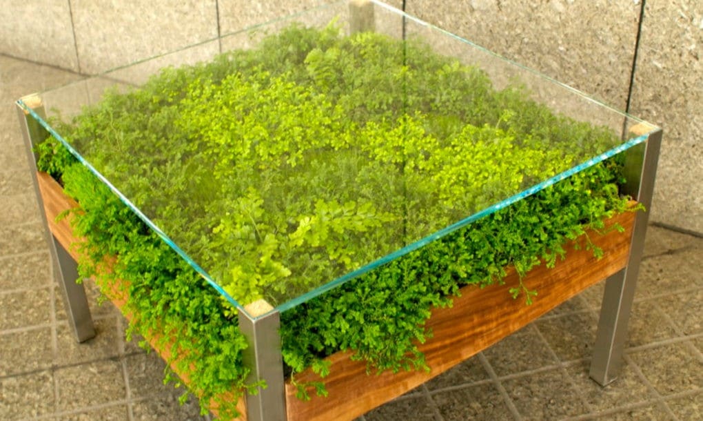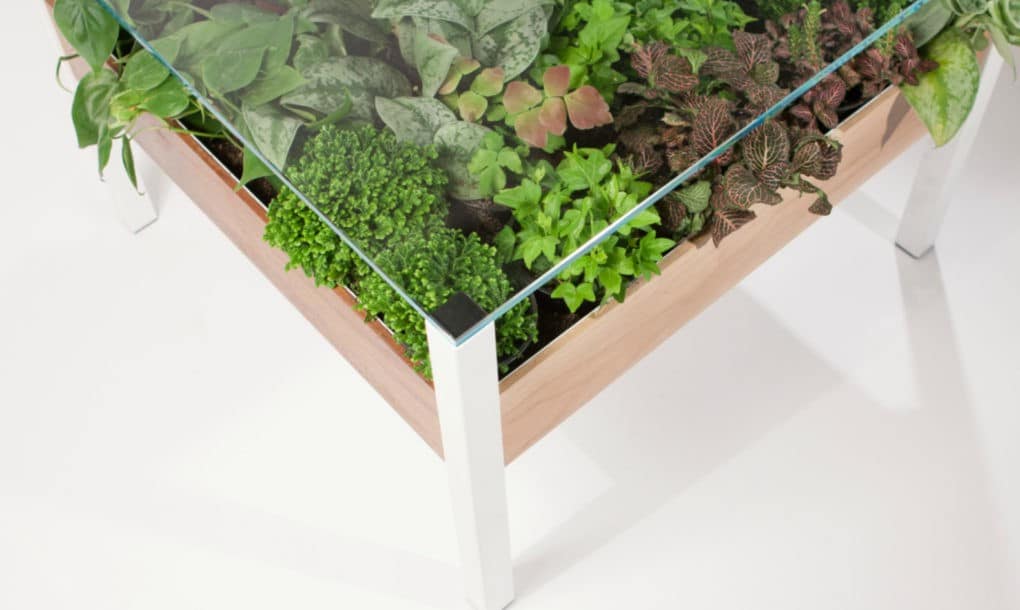 Πράσινος “κήπος” μέσα στο σπίτι, και μάλιστα κάτω από το τραπέζι. Ένα ζωντανό… τραπέζι με διάφορων ειδών φυτά (από παχύφυτα μέχρι βότανα) δίνει τη δυνατότητα στον χρήστη όχι μόνο να απολαύσει μια όμορφη εικόνα στο σπίτι του με καταπράσινα φυτά αλλά και να έχει στο τραπέζι του εάν επιθυμεί φρέσκα βότανα για τις συνταγές μαγειρικής. Απαιτεί χαμηλή συντήρηση και είναι ιδανικό για όσους δεν επιθυμούν μεγάλη ενασχόληση με τα φυτά.