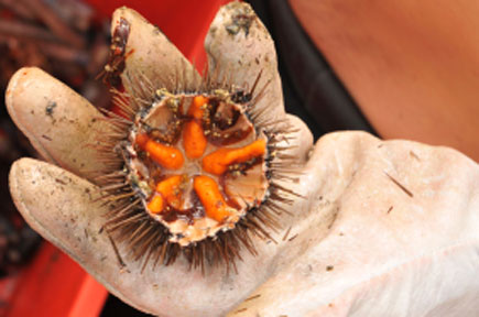 Προετοιμάζουμε το χώρο εργασίας Καθαρίζουμε τους αχινούς κόβοντάς τους κατά μήκος στο κέντρο τους. Αδείαζουμε το υγρό που έχουν μέσα