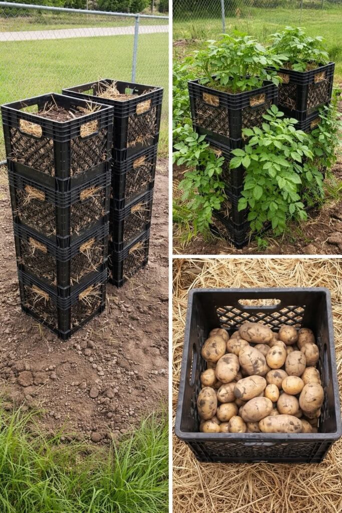 Ξεχάστε το σκάψιμο σε σειρές—στοιβάζετε κλουβάκια, φυτεύετε πατάτες σε κάθε επίπεδο και μαζεύετε απλώς αναποδογυρίζοντας τα κιβώτια. Χωρίς φτυάρια, χωρίς κομμένες πατάτες, χωρίς πόνο στην πλάτη.