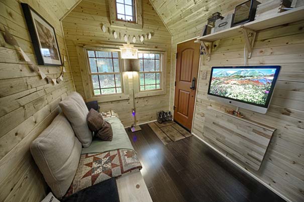 Το μικροσκοπικό αυτό ξύλινο σπίτι κατασκευάστηκε σε επτά μήνες και είναι μόλις 13 τετραγωνικά μέτρα. Αυτό όμως δε σημαίνει ότι υπολείπεται σε κάτι των κανονικών σπιτιών, αφού διαθέτει σαλόνι, κουζίνα, μπάνιο μέχρι και ξενώνα.