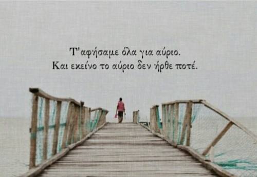 Όλο κοιτάμε το ρολόι, να φύγει κι αυτή η ώρα, να φύγει κι αυτή η μέρα, να έρθει το αύριο, και πάλι φτου κι απ’την αρχή.